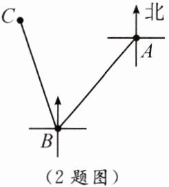 2. 如图,一艘船由 A 地出发,向南偏西 40°方向航行 80 n mile 到达 B 地,再由 B 地向北偏西 20°方向航行 80 n mile 到达 C 地,则 A,C 两地相距(