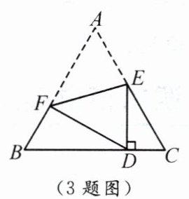 3. 一张等边三角形纸片 ABC 如图所示,点 E 在 AC 边上,点 F 在 AB 边上,将其沿 EF 折叠,使点 A 落在 BC 边上的点 D 处.已知 ED ⊥ BC,则∠EFD 的度数为(