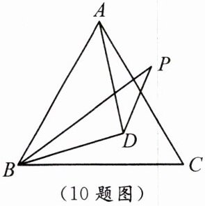 10. 如图,D 为等边三角形 ABC 内的一点,AD = BD,BP 与 BC 关于 BD 成轴对称,连接 DP,则∠P 的度数为