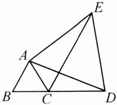 8. 如图,△ABC 为等边三角形,D 是 BC 的延长线上一点,连接 AD,以 AD 为边作等边三角形 ADE,连接 CE.试探究 AC,CD,CE 三条线段之间的数量关系,并说明理由.