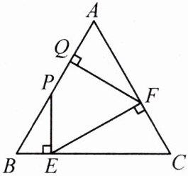 例2 如图,等边三角形ABC的边长为2,P是AB上任意一点(点P可以与点A重合,但不与点B重合),过点P作PE⊥BC于点E,过点E作EF⊥AC于点F,过点F作FQ⊥AB于点Q,设BP = x。