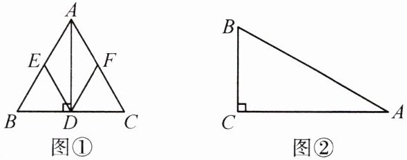 1. 如图①,在等边三角形ABC中,AD是高,∠BDE = ∠CDF = 60°。