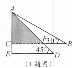 4. 如图,将两个三角形叠放在一起。若AB = 8 cm,则阴影部分的面积是