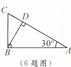6. 如图,在△ABC中,∠ABC = 90°,BD⊥AC于点D,∠A = 30°,则$\frac{S_{△BCD}}{S_{△ABD}}$ =