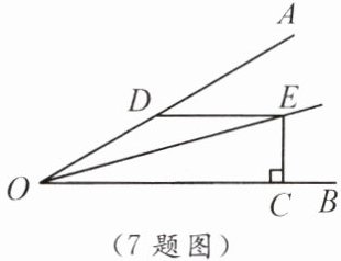 7. 如图,∠AOB = 30°,OE平分∠AOB,EC⊥OB于点C,ED//OB交OA于点D。若EC = 2,则OD的长为