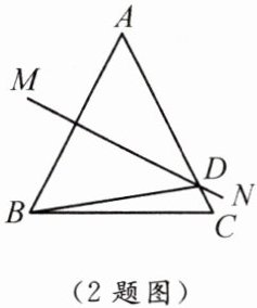 2. 如图,在△ABC 中,∠ABC = ∠C,AB = 10,AB 的垂直平分线 MN 交 AC 于点 D. 若△DBC 的周长为 19,则 BC 的长为