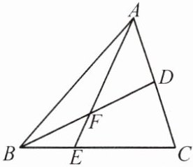 14. 如图,在△ABC中,E是BC上一点,EC=2BE,D是AC的中点。若$S_{△ABC}=24$,求$S_{△ADF}-S_{△BEF}$的值。