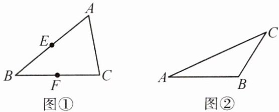 10. (1)如图①,在△ABC中,E,F分别为AB,BC的中点,请仅用无刻度的直尺画出AC的中点M。
