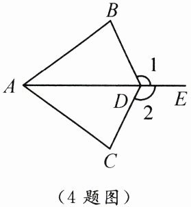 4. 如图,$\angle 1 = \angle 2$,要使$\triangle ABD \cong \triangle ACD$,需添加一个条件,那么添加下列一个条件后,仍无法判定$\triangle ABD \cong \triangle ACD$的是()