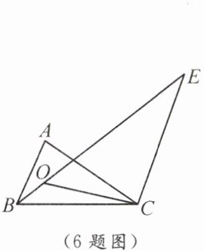 6. 如图,在$\triangle ABC$中,$\angle ABC$和$\angle ACB$的平分线相交于点$O$,$E$为$BO$延长线上一点,连接$CE$.若$\angle A = 80^{\circ}$,$\angle ECO = 3\angle E$,则$\angle E$的度数是