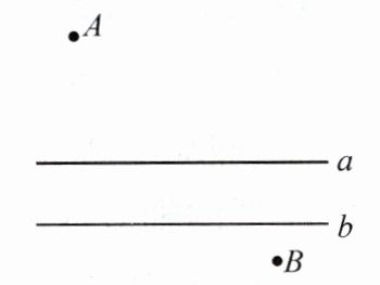 例 3 如图,A,B 两地位于一条河的两岸,现要在这条河上建一座桥 MN,使 A 地到 B 地的路径(即 A→M→N→B)最短.请作出桥 MN 的修建位置(河岸 a//b,桥 MN 与河岸垂直).