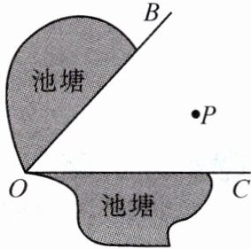4. 有一个养鱼专业户在如图所示的两个池塘里养鱼,他住的地方在 P 点,每天早上他都去两个池塘边投放鱼食.请问他怎样走才能以最短的路程回到住地?请画图说明.