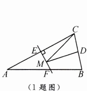 1. 如图,在等腰三角形 ABC 中,底边 BC 的长为 6,△ABC 的面积为 36,腰 AC 的垂直平分线分别交 AC,AB 边于点 E,F,D 为边 BC 的中点,M 为线段 EF 上一动点,则△CDM 周长的最小值为