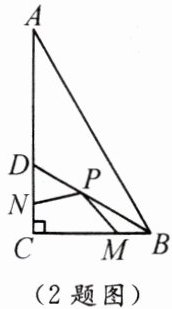 2. 如图,在 Rt△ABC 中,∠C = 90°,∠A = 30°,AB = 7,BD 是△ABC 的角平分线,P,N 分别是 BD,AC 上的动点,点 M 在 BC 上,且 BM = 1,则 PM + PN 的最小值为