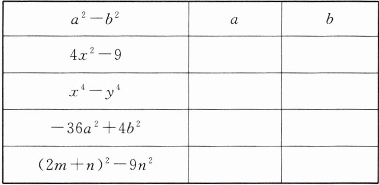 2. 根据平方差公式的结构特征,完成下面的表格。