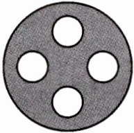 例 2 如图,某小区规划在半径为 $R$ 的圆形场地上修建四个半径都为 $r$ 的喷水池$(2r < R)$,其余部分种花草。当 $R = 5m$,$r = 1.25m$ 时,求种花草部分的面积($\pi$ 取 $3.14$)。