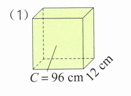 (1)宽/高:$96÷4=24$(厘米) $12×24×24=6912$(立方厘米)