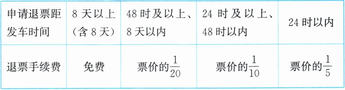 (2)如果李叔叔接到取消出差的通知后,过了3时才申请退票,那么能退回多少钱?