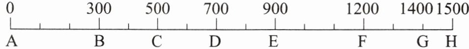 5. 生活情境 据了解,火车票是按“票价= 单程参考价×$\frac{实际里程数}{总里程数}$”的方法定价的。一列火车往返于A站和H站之间,单程参考价为600元。下图标了沿途各站到A站的里程数。(单位:千米)