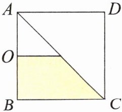 2. 几何直观 如图,在正方形ABCD中,O是AB的中点,涂色部分的面积是$\frac{2}{3}$平方厘米。求正方形ABCD的面积和周长。