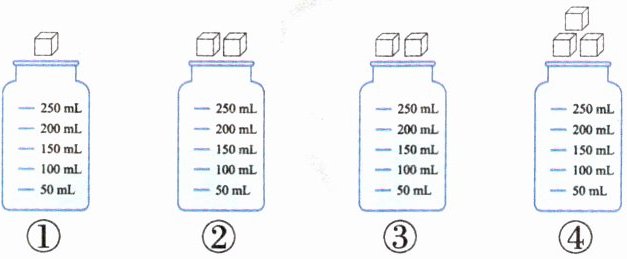 下面4个完全相同的杯子中各有一些水,在每个杯子中分别放入几块方糖(每块方糖完全一样)。哪杯水最甜?请说明理由。