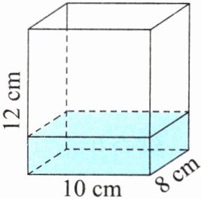 2. 如图,向一个长10厘米、宽8厘米、高12厘米的长方体玻璃容器内倒水,当容器中的水形成的长方体第一次出现相对的两个面是正方形时,水的体积是多少立方厘米?