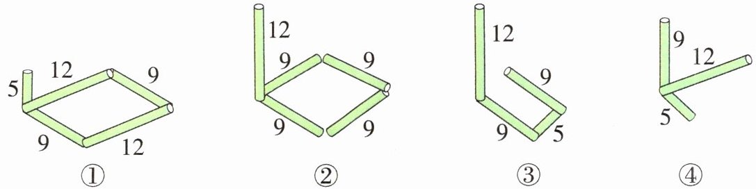② ②号下底面是边长为9厘米的正方形,则上底面也得是边长为9厘米的正方形,需要8根9厘米的小棒,但是9厘米的小棒只有4根,因此一定不能搭建成长方体框架