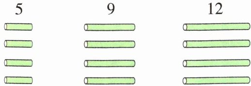 1. 空间观念 在搭建长方体框架的操作活动中,每名同学都利用12根小棒进行搭建。小棒的长度和数量如图所示。(单位:厘米)
