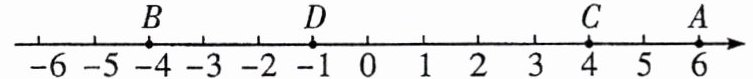 (1)点A:6,点B:-4,点C:4,点D:-1