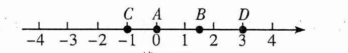 2.点A:0,点B:1.5,点C:-1,点D:3