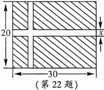 22. 某公园准备修建一块长方形草坪,长为 30 m,宽为 20 m。并在草坪上修建如图所示的十字路,已知十字路宽 x m,回答下列问题: