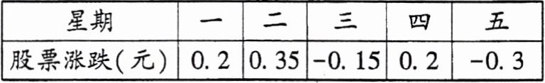 3. 小明的爸爸买了一种股票,每股10元,下表记录了在一周内该股票的涨跌的情况(用正数记股价比前一日的上涨数,用负数记股价比前一日的下跌数),该股票这五天中的最高价是