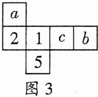 在图$3$中,“$a$”与“$5$”是相对面,“$b$”与“$1$”是相对面,“$c$”与“$2$”是相对面。