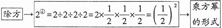 除方→$2^{\circled{3}}= 2÷2÷2= 2×\frac{1}{2}×\frac{1}{2}= (\frac{1}{2})^{2}$乘方幂的形式