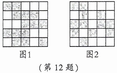12.(2025·重庆育才)二维码在我们日常生活中的应用越来越广泛,它是用某种待定的几何图形按照一定的规律在平面分布的、黑白相间的、记录数据符号信息的图形;在代码编制上巧妙利用构成计算机内部逻辑基础的“0”,“1”,使用若干个与二进制相对应的几何图形来表示数值(灰色代表1,白色代表0)。如图是某次考试中两位同学的准考证号的二维码的简易编码,如图1是同学小胡的准考证号的二维码的简易编码,其中第一行代表二进制的数字11000,转化成10进制为:$1×2^{4}+1×2^{3}+0×2^{2}+0×2^{1}+0×2^{0}$(提示:$2^{0}= 1$)= 24,同理,第二行至第五行代表二进制的数字分别为1110,111,11100,1101,转化成10进制为:14,07,28,13。将五行编码组合到一起就是小胡的准考证号2414072813,其中第一行编码“24”和第二行编码“14”表示区域和学校,第三行编码“07”表示班级为07班,第四行编码“28”表示考场号为28,第五行编码“13”表示座位号是13。若图2是本次考试小张同学的准考证号的二维码的简易编码,则小张的准考证号为( )
