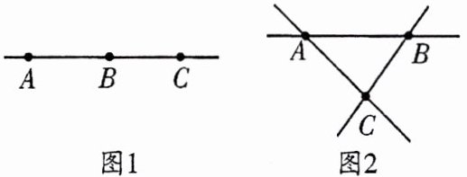 [分析] ① 平面内的三点的位置有两种可能:三点在同一条直线上(如图1);三点不在同一条直线上(如图2)。② 当任意三点不在一条直线上时,得到直线条数最多。