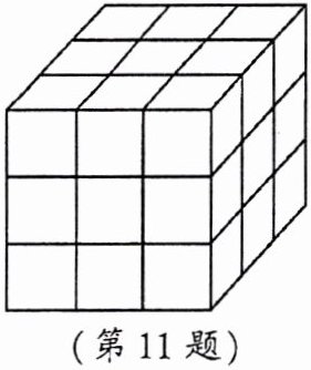 11. 如图所示,由 27 个完全相同的小方块堆成一个正方体,如果将它的表面涂成黄色。