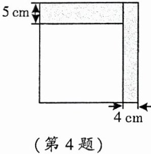 4. 如图所示,小明将一个正方形纸片剪去一个宽为4cm的长条后,又在剩下的长方形中剪去一个宽为5cm的长条。若两次剪下去的长条面积正好相等,想一想,原来正方形纸片的边长是多少?