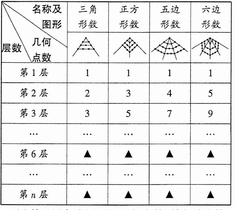写出第6层各个图形的几何点数,并归纳出第n层各个图形的几何点数。