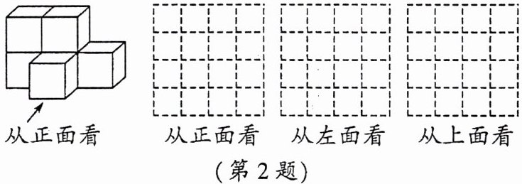 2. 如图是由棱长都为1cm的6个小正方体组成的简单几何体。