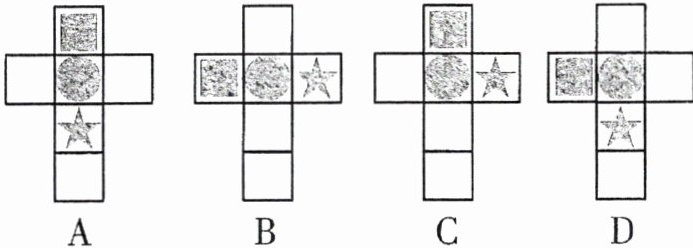 3. 将如图所示表面带有图案的正方体沿某些棱展开后,得到的图形是 ( )