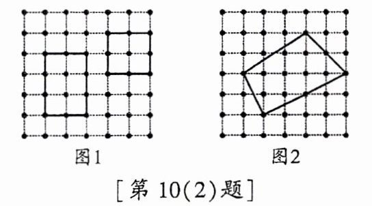 (2)“皮克定理”是用来计算顶点在格点(即图中虚线的交点,如图中的小黑点)上的多边形的面积公式,公式为$S= a+\frac{b}{2}-1$。小明只记得公式中的S表示多边形的面积,a和b中有一个表示多边形边上(含多边形顶点)的格点个数,另一个表示多边形内部的格点个数,但记不清楚究竟是哪一个表示多边形内部的格点个数,请你利用图1探究,并运用探究的结果求出图2中多边形的面积是______。