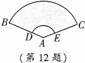 12.【传统文化】扇子最早称“翣”,在我国已有三千多年历史。“打开半个月亮,收起兜里可装,来时荷花初放,去时菊花正黄。”这则谜语说的就是扇子。如图,一竹扇完全打开后,外侧两竹条AB,AC夹角为135°,AB的长为30cm,贴纸部分的宽BD为20cm,则扇面面积为( )