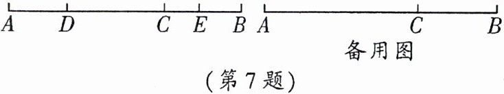 7. 如图,点C在线段AB上,满足AC= 2BC,点D和点E是线段AB上的两动点(点D在点E的左侧),满足DE= 21 cm,AB= 36 cm。