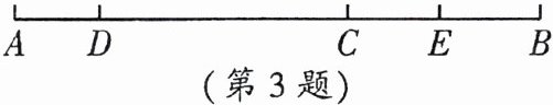 3. 如图,C,D,E三点在线段AB上,$AD= \frac{1}{3}DC$,点E是线段CB的中点,$CE= \frac{1}{6}AB= 2$,求线段DE的长。