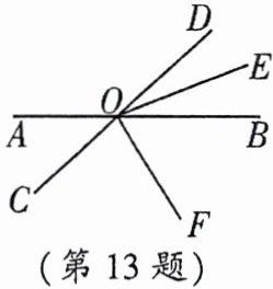 13. 如图,直线$AB,CD相交于点O$,$OE平分\angle BOD$,$OF平分\angle COE$,$\angle AOD:\angle BOD= 2:1$。