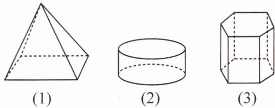 (3)包含的平面图形有长方形、六边形,其中长方形位于六棱柱的侧面,六边形位于六棱柱的上、下底面