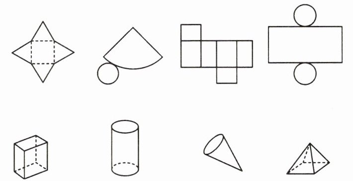 9. 北京四中校本经典题 如图,把立体图形与它的展开图用线连接起来.