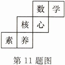 11. 数学是研究数量关系和空间形式的科学,是人类文化的重要组成部分,数学素养是现代社会每个公民应该具有的基本素养.有一个正方体盒子,每个面上分别写一个字,一共有“数学核心素养”六个字.如图,这是这个正方体盒子的平面展开图,则原正方体盒子中与“素”字相对面的字是(