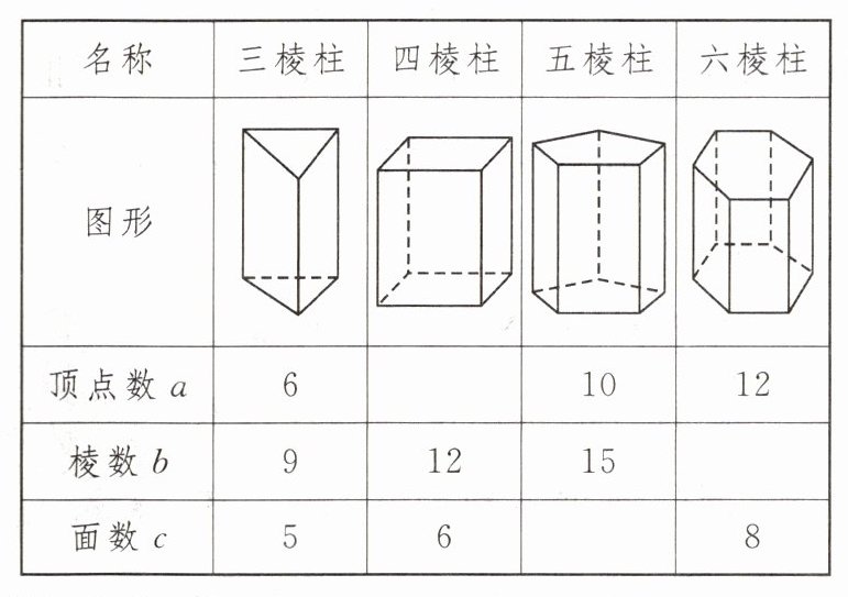 (2)根据上表中的规律判断,十四棱柱共有个面,条棱,个顶点.